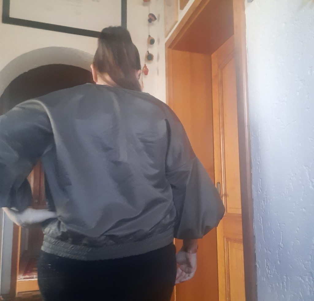 - Kein Bündchenstoff, sondern gleicher Stoff mit 5cm breitem Gummiband, abgesteppt