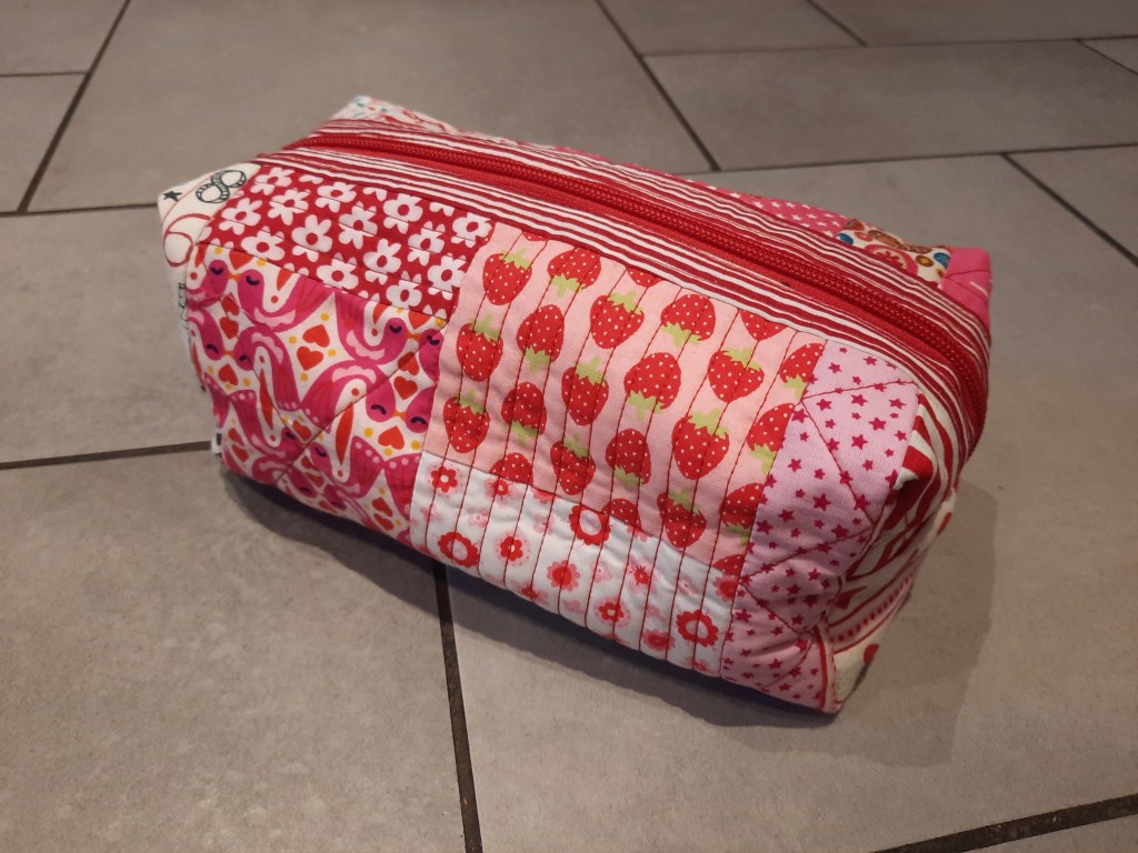 Mein Geschenk kommt von Anita und sie hat sich wirklich etwas tolles einfallen lassen. In einer Boxy Bag aus rosa Outdoorstoff versteckte sich eine weitere, wirklich tolle und aufwändig genähte bunte kleine Boxy Bag. Ich bin ja viel zu ungeduldig aus so vielen kleinen Teilchen was neues, größeres zu machen. Wirklich allerliebst, es gibt so viel zu entdecken. Seht selbst: