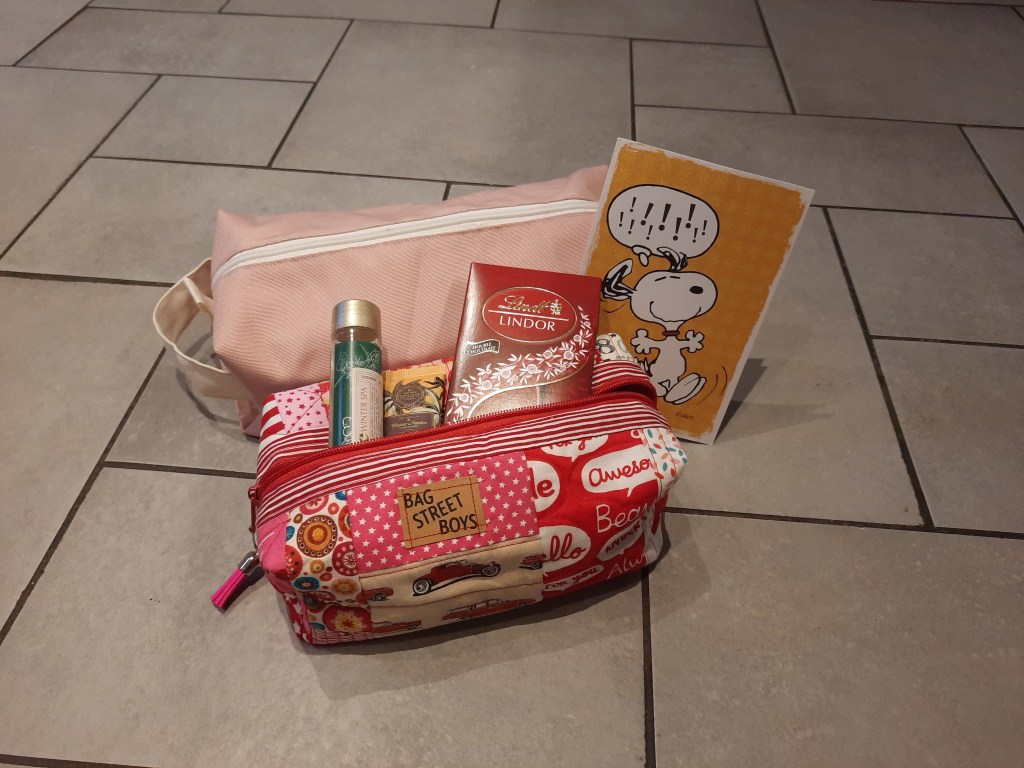 Außerdem gab’s noch Schokolade (lecker) und was fürs Badezimmer. Ich habe mich wirklich sehr gefreut und werde die beiden BoxyTäschchen in Ehren halten und einen passenden Einsatzzweck dafür finden. Nochmal ein herzliches Dankeschön an Anita!