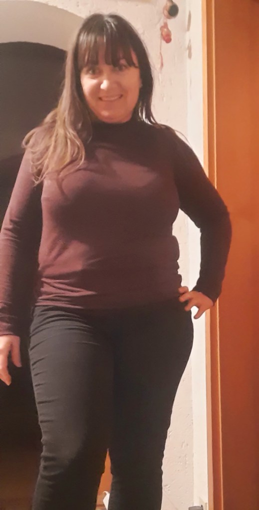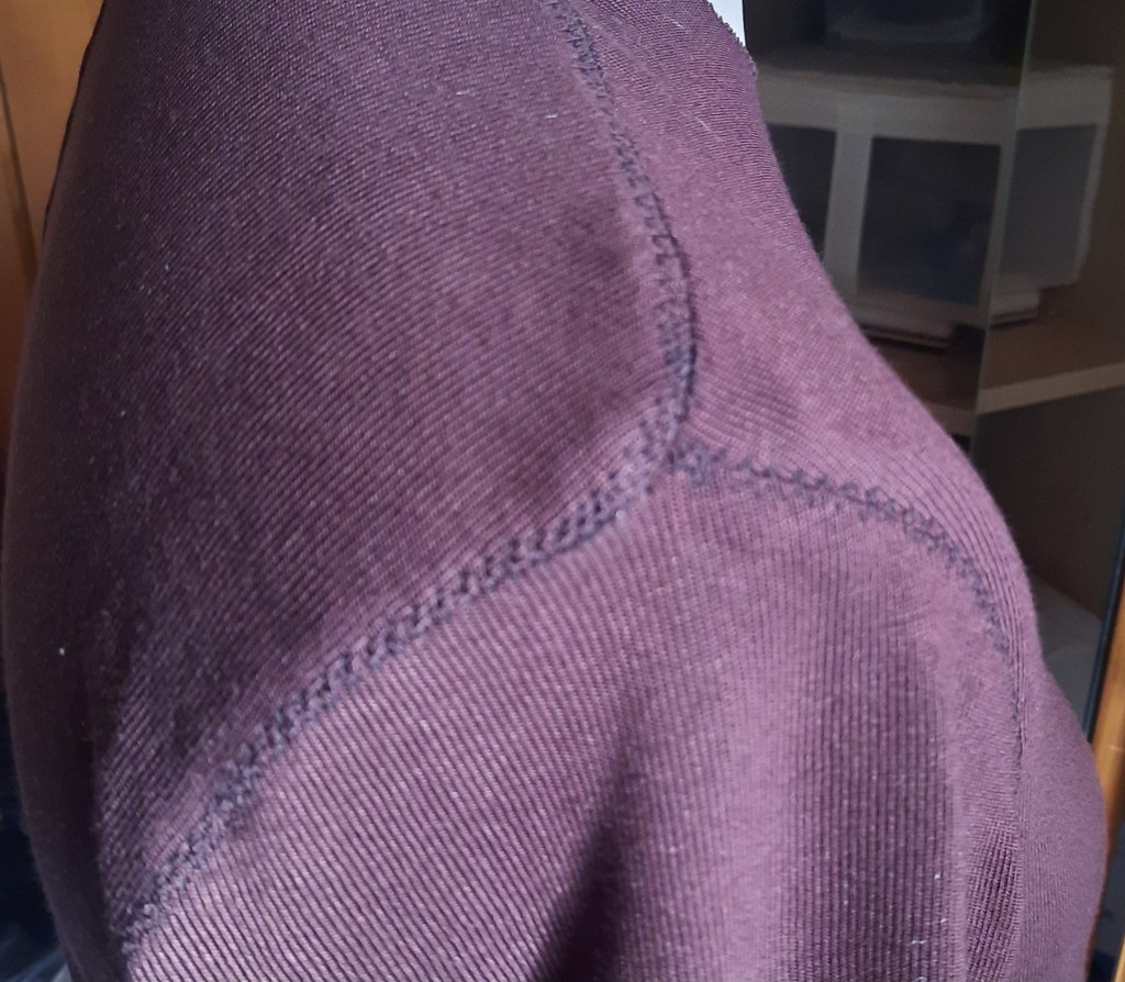 Da dachte ich zuerst an den Rolli Greta G. aus der Ottobre Woman 5/2021. Das Schnittmuster habe ich ja Anfang letzten Jahres schon mal genäht und für mich angepasst. Der Rolli wäre also eigentlich schnell genäht. Und ich habe Mitte 2025 bei Buttinette auch einen Viskosestrick in der Farbe brombeere bei einer größeren Bestellung mitbestellt.