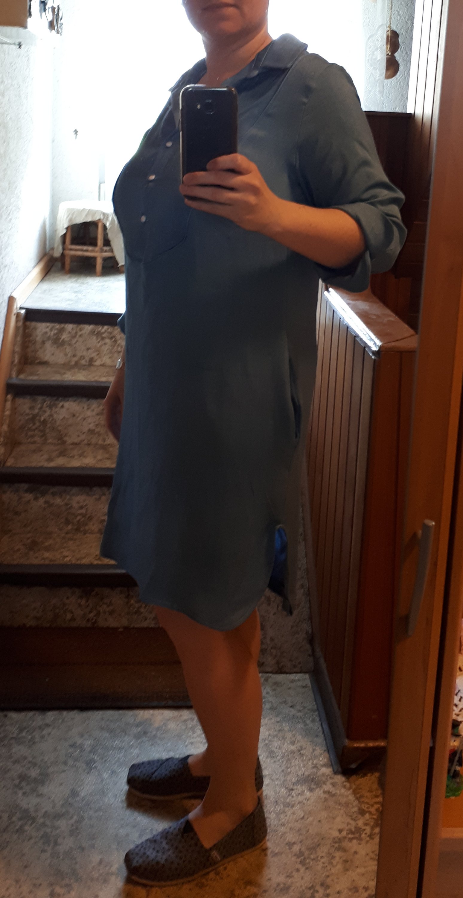 Es sollte die Else2 werden, mit Plastron vorne mit Knopfleiste, abgerundetem Saum vorne und Ärmel mit Manschetten zum Umschlagen.